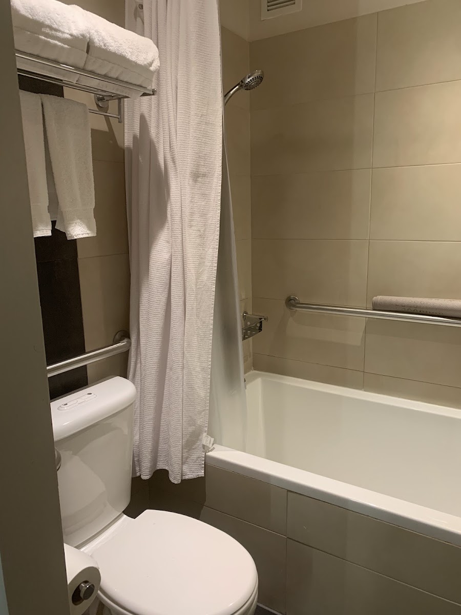 “ Lobby and lower lobby bar/lounge/restaurant are great. Love the decor and setup. Staff is very helpful and welcoming. They have a free shuttle that takes you across the bridge and drops you off in the middle of some great shopping and picks you back up. The views are amazing. Rooms are small, the cleaning could have been better, as well as some of the towels and furniture are tattered. ”